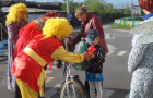 Накануне дня защиты детей прошёл дождь, было прохладно, и провести полноценный традиционный праздник на улице в детском саду «Сказка» с интересными заданиями не получилось. Поэтому решили провести акцию «Подари улыбку другу». Сотрудники переоделись в костюмы и встречали родителей и детей на улице, у главного входа. Под детские песни звучали поздравления и пожелания, детей и родителей спрашивали про праздник, дарили шары. Так как в детском саду большая территория и до главного входа надо идти несколько метров, Баба Яга предлагала услуги «такси на метле».