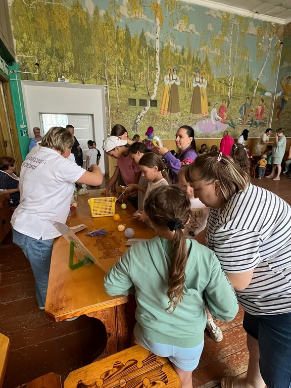 Особое внимание было уделено мастер-классам, где участники могли проявить свои творческие способности. Родители и дети вместе изготавливали поделки, символизирующие любовь и верность: ромашки, открытки «февронек» и куклы-закрутки (Берегиня). Эти символы праздника не только украсили мероприятие, но и стали трогательными подарками для всех участников.