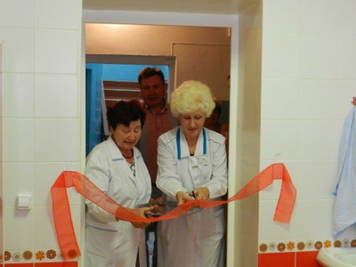 Почетное право перерезать ленточку было предоставлено заведующей районной поликлиникой Н.А.Алешиной и заместителю главного врача Ф.М.Слободенюк.