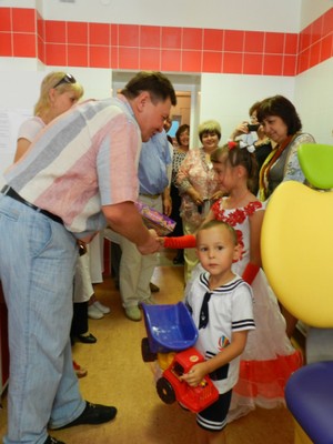Юные участники торжественной церемонии и стали первыми пациентами стоматологического кабинета. Им провели осмотр полости рта, а завершение праздника вручили подарки.