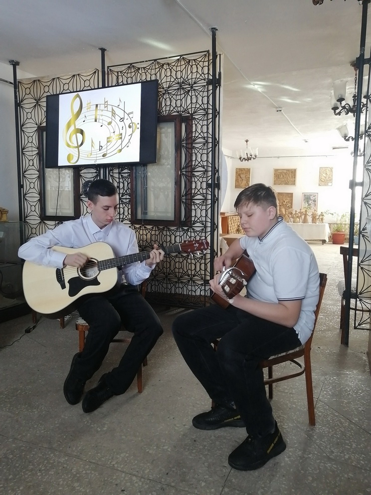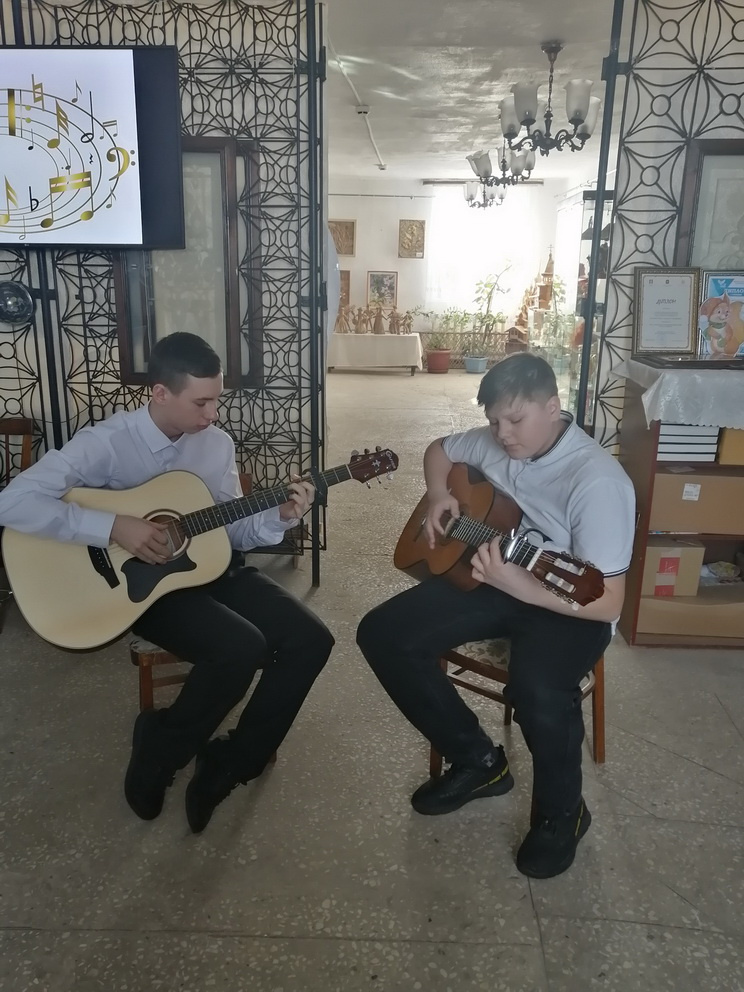 В музыкальной паузе перед игроками выступали учащиеся Варненской ДШИ по классу гитара Глеб Мирошниченко и Семен Кудашев педагог Нестеров Валерий Николаевич.
