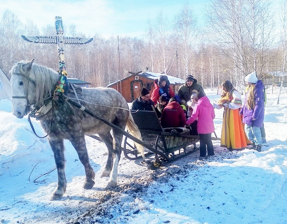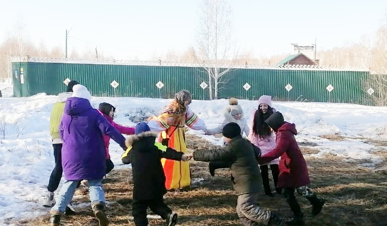 Уже ни один год сотрудники семейного центра «Аквилон» знакомят участников мероприятия с масленичными традициями разных народов. Вот и 01.03.2022г. сотрудники центра организовали для детей празднование Масленицы. Для участников экскурсии были организованы состязания с «медведем»; таинственный ритуал с Окрутником, сопровождаемый дымовой завесой и шумом барабанов; хороводы, игры, катание на санях, запряжённых лошадками и на собачьих упряжках, а также на снегоходах и банане.