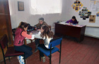 Дети внимательно с интересом слушали рассказ о космосе, о Гагарине, смотрели выставку книг, сами много рассказывали, что знают, а потом рисовали рисунки, которые затем вывесили в фойе клуба.
