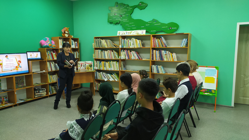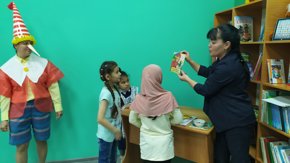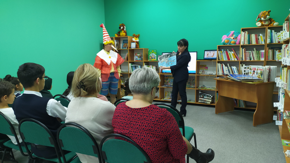 13 октября было проведено первое мероприятие: Экскурсия по библиотеке «Книжкин теремок», на котором присутствовали дети с первого по девятый класс. В читальный зал библиотеки на встречу с ребятами пришёл гость: Буратино. В ходе занятия дети в игровой форме узнали, что у каждой книги есть своё место на книжной полке, правила поиска нужной книги, а также побывали в стране «Журналии», где познакомились с детскими журналами: «Спасайкин», « Озорные детки», «Саша и Маша». Ещё ребята узнали, что такое абонемент, читальный зал, формуляр читателя и правила поведения в библиотеке.