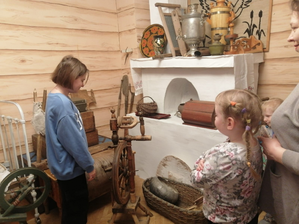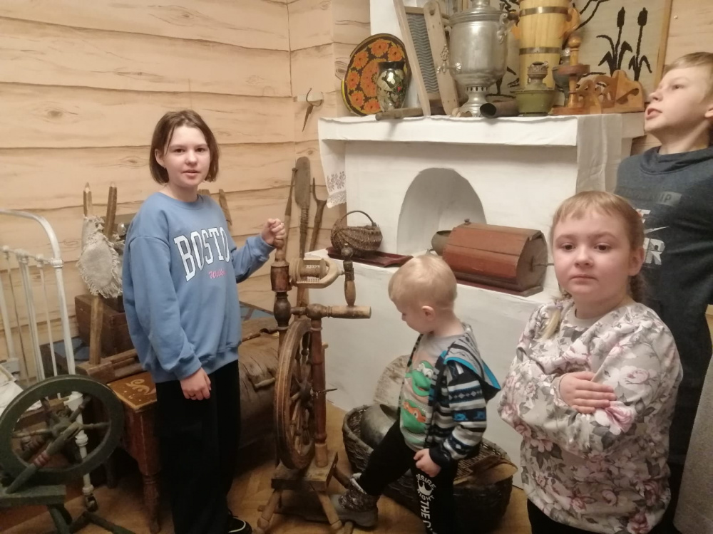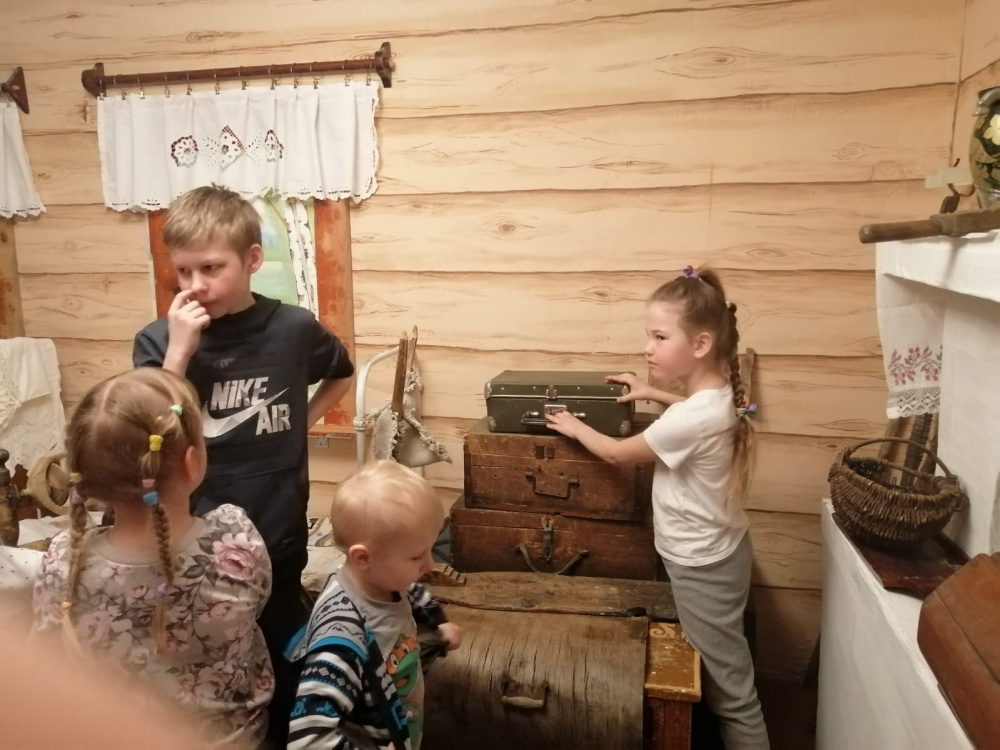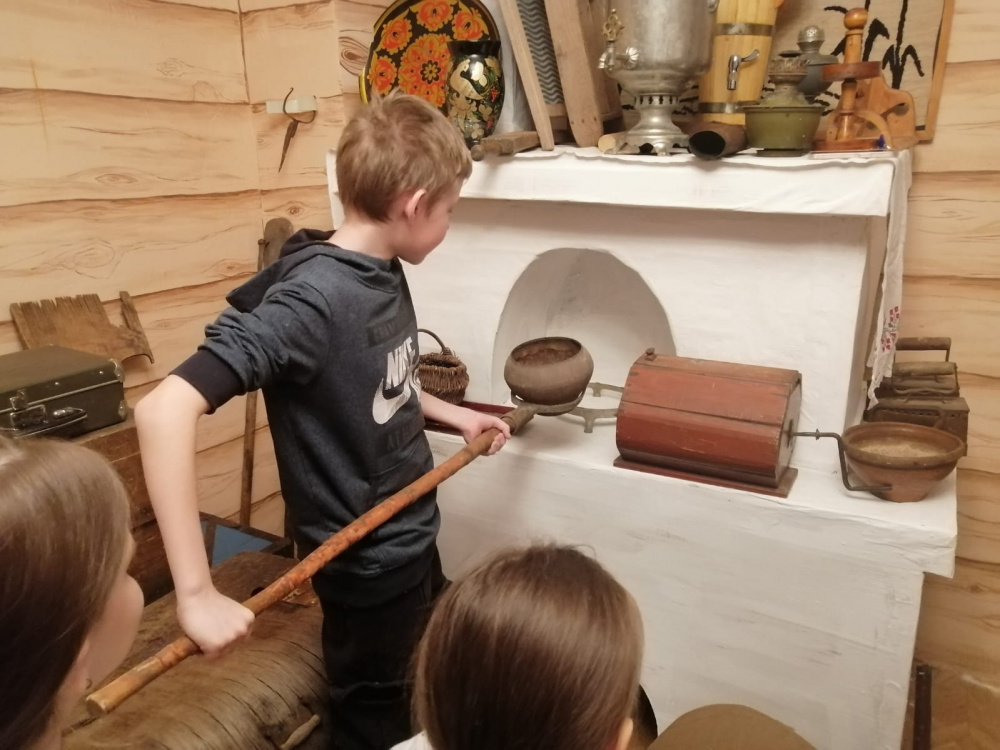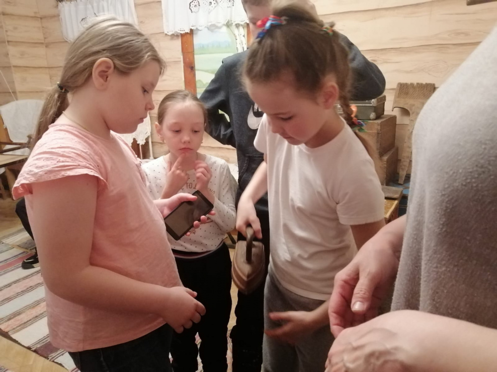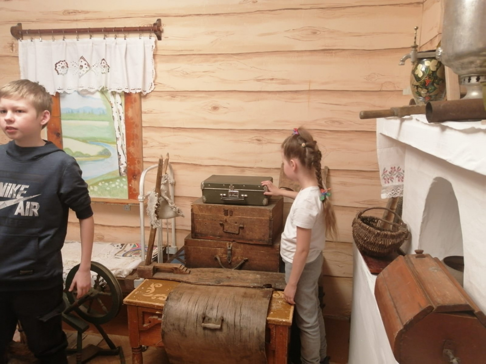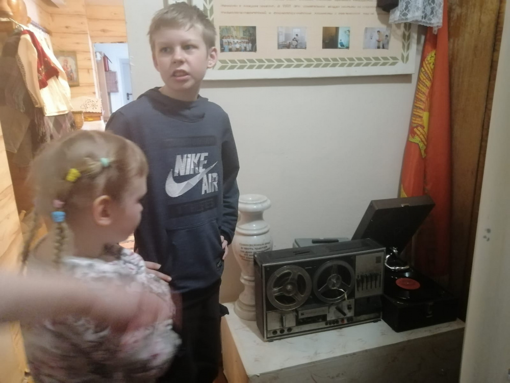 Сначала дети познакомились с убранством, предметами быта наших прадедов, исследовав часть музея «Русская изба». Затем побывали в той части музея, где смогли проследить, как научно-технический прогресс на протяжении нескольких десятилетий менял жизнь и быт людей: от прялки до швейной машинки, от угольного утюга до электрического, от устаревшего компьютера до современного ноутбука. Особый интерес вызвали старинные проигрыватели, радио, магнитофоны. Заинтересовала детей и выставка медалей, наградных знаков времен Великой Отечественной войны. Ребята смогли определить назначение многих предметов из 60-70 гг. и пояснили, где и с какой целью ими пользовались.