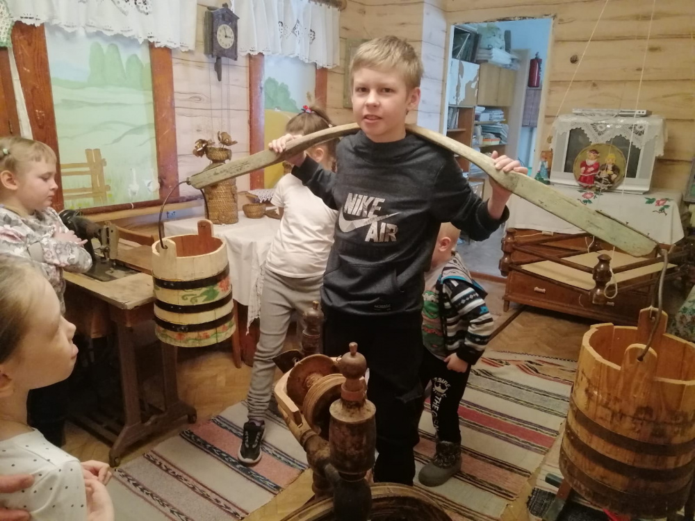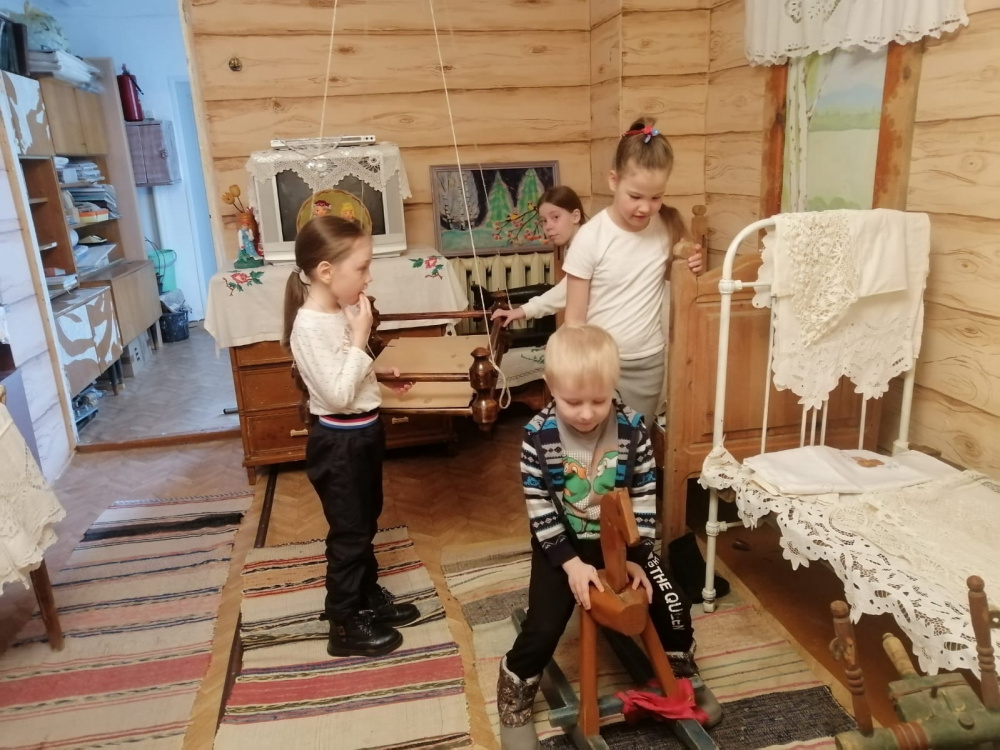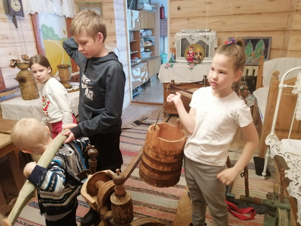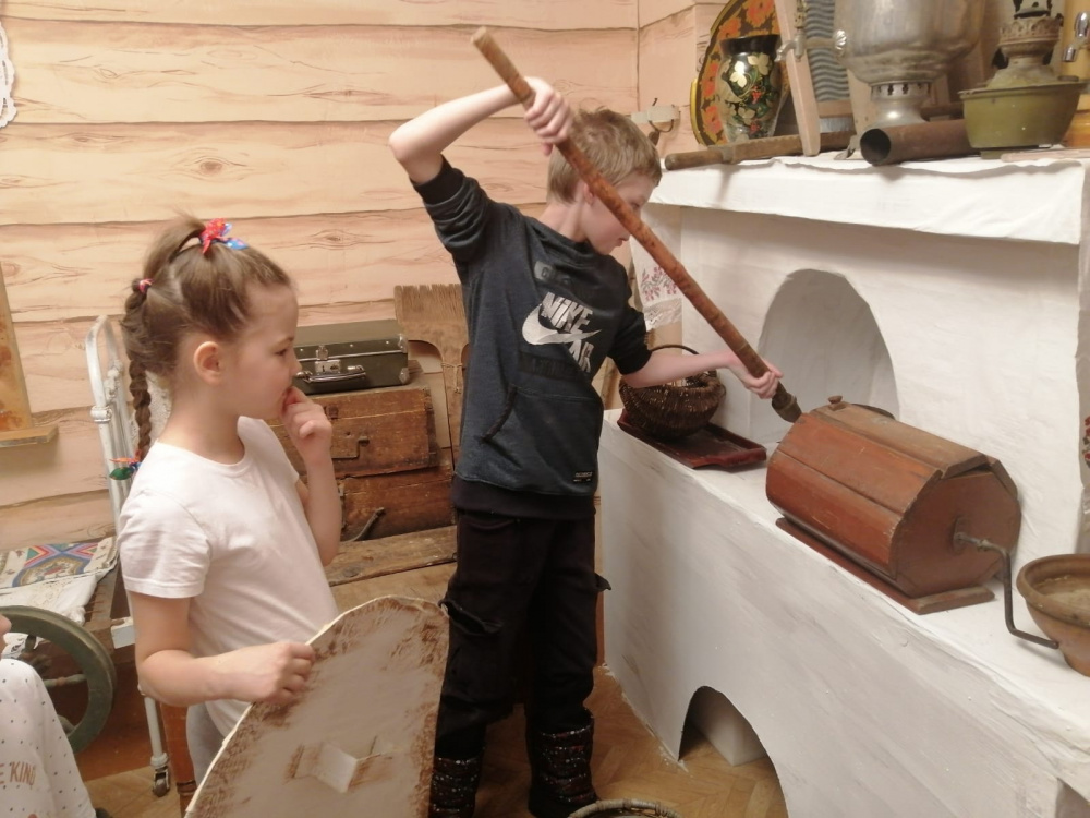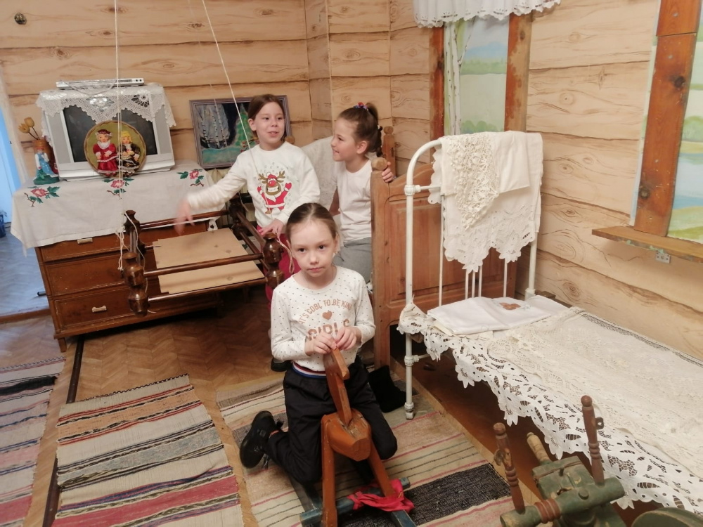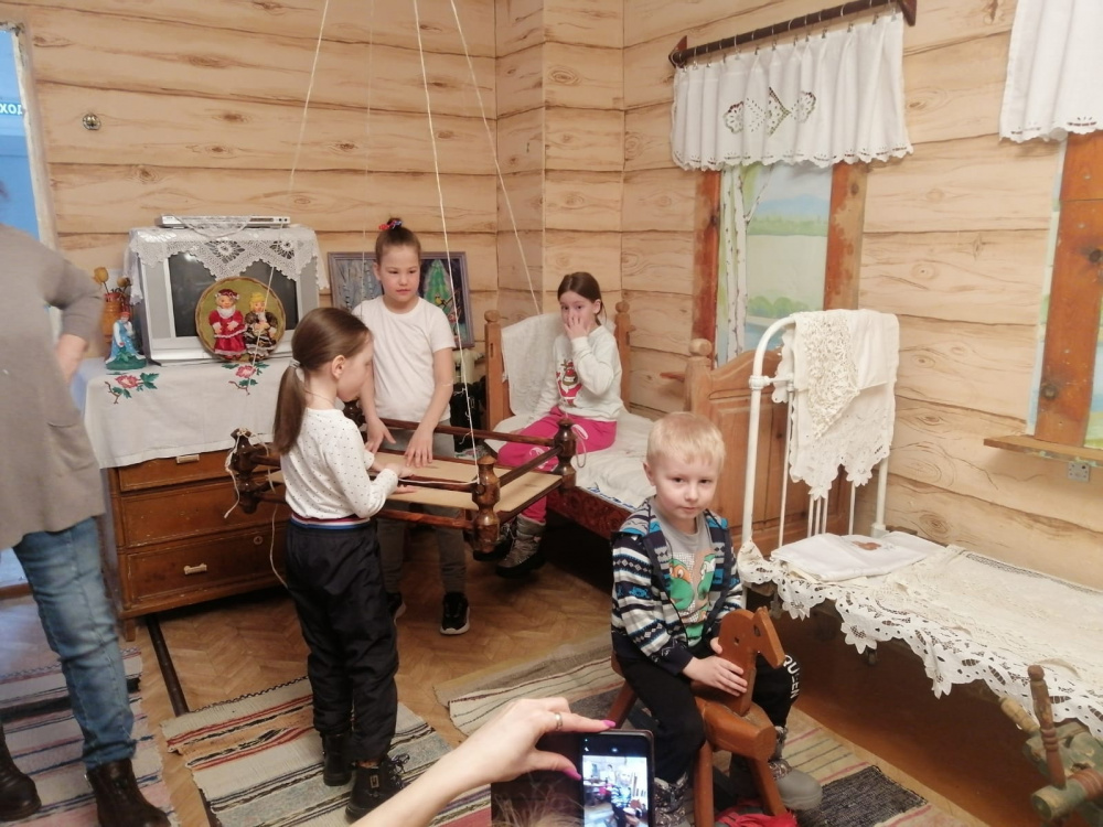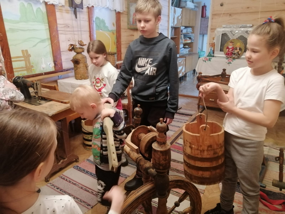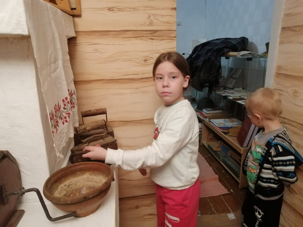 Сначала дети познакомились с убранством, предметами быта наших прадедов, исследовав часть музея «Русская изба». Затем побывали в той части музея, где смогли проследить, как научно-технический прогресс на протяжении нескольких десятилетий менял жизнь и быт людей: от прялки до швейной машинки, от угольного утюга до электрического, от устаревшего компьютера до современного ноутбука. Особый интерес вызвали старинные проигрыватели, радио, магнитофоны. Заинтересовала детей и выставка медалей, наградных знаков времен Великой Отечественной войны. Ребята смогли определить назначение многих предметов из 60-70 гг. и пояснили, где и с какой целью ими пользовались.