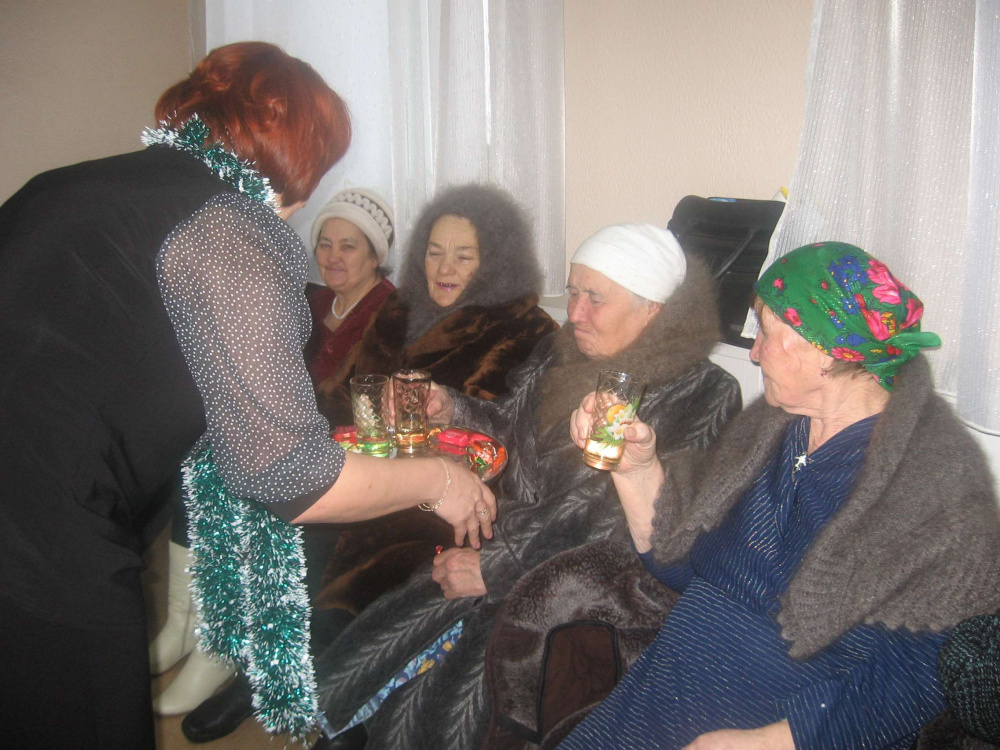 Начальник Управления социальной защиты населения Яруш Людмила Юрьевна поздравила и вручила им подарки. Ансамбль «Ракитушка», «Чешма» порадовали гостей своими песнями. Пенсионеры плясали, шутили, пели частушки, остались довольны праздником, получили заряд бодрости на весь год.