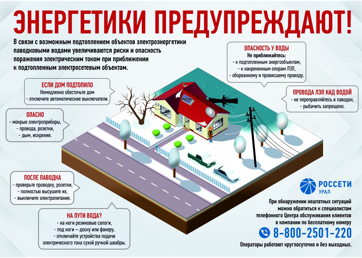 В связи с возможным подтоплением объектов электроэнергетики паводковыми водами, увеличиваются риски и опасность поражения электрическим током при приближении к подтопленным электросетевым объектам.