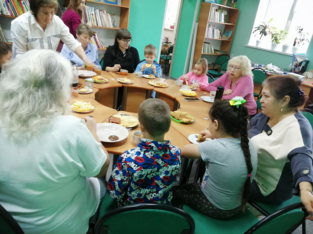 Конечно, ни для кого не секрет, что наши бабушки, а иногда и дедушки, кроме всех достоинств, о которых мы говорили на мероприятии, ещё и являются отличными кулинарами. Поэтому нашим бабушкам было предложено домашнее задание «Блюдо на бис». Все участники клуба по достоинству оценили старания бабушек, продегустировав блюда во время чаепития.