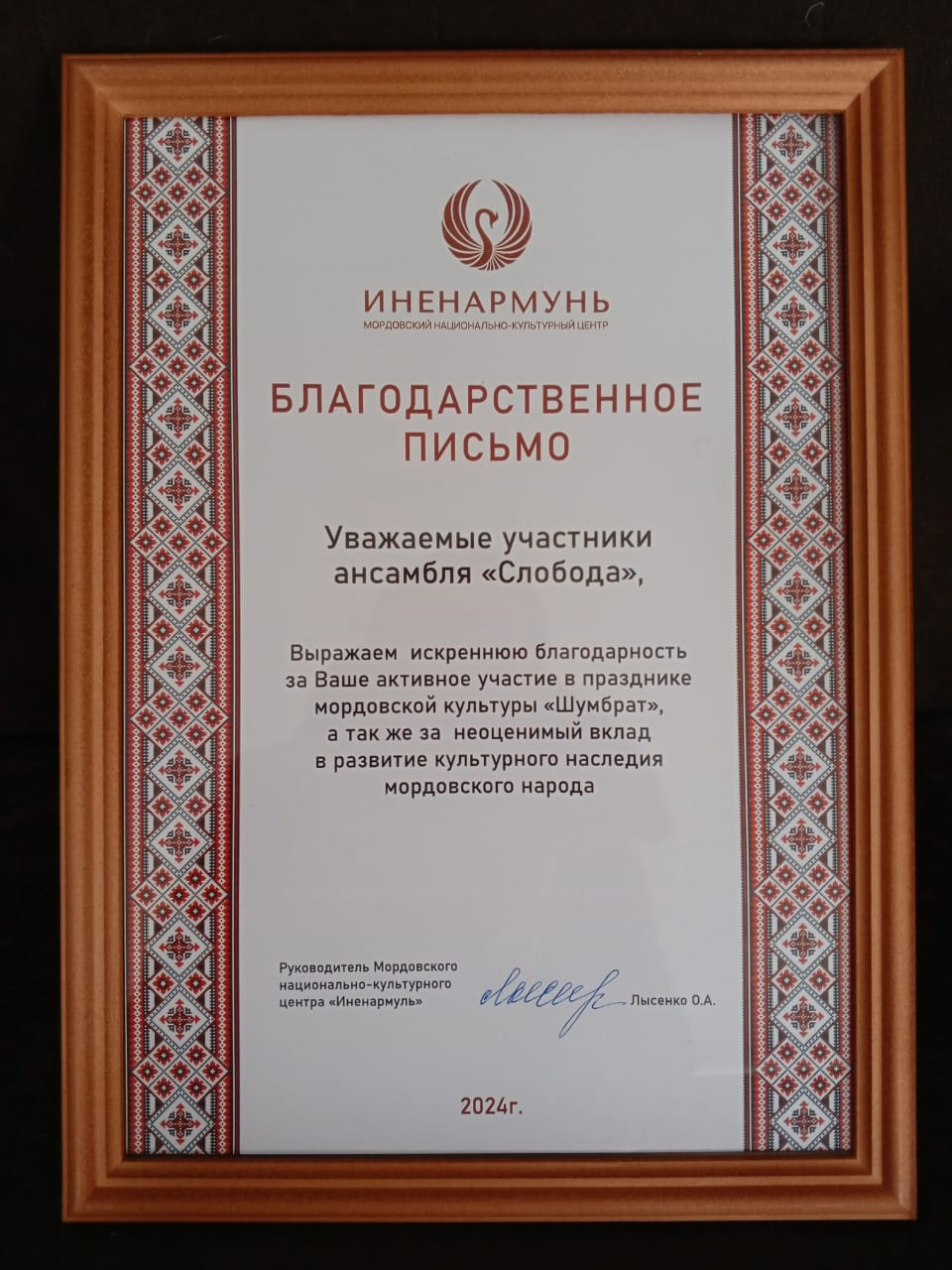 21 сентября в городе Троицк Челябинской области прошёл Фестиваль мордовской культуры «Шумбрат», в котором участвовала делегация из Варненского района. В её состав вошли начальник отдела по культуре и спорту администрации Варненского муниципального района Сауле Уракпаевна Сафиуллина, народный фольклорный коллектив ансамбль «Слобода» Кулевчинского Дома культуры, хранительница Мордовских традиций села Кулевчи Людмила Васильевна Бабина.