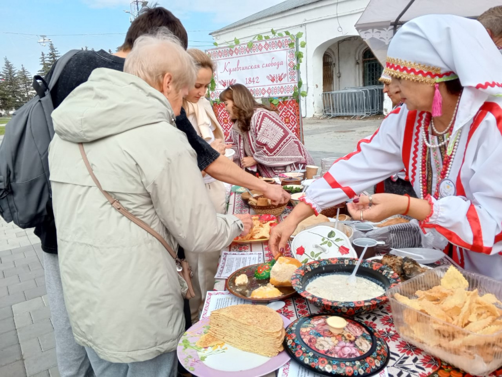Кулевчинский ансамбль «Слобода» на празднике спел песню на мордовском языке и частушки. А также представил своё подворье с большим разнообразием национальной мордовской кухни. Гости фестиваля не по одному разу подходили к столу, чтобы отведать вкусного мордовского кулевчинского угощения.