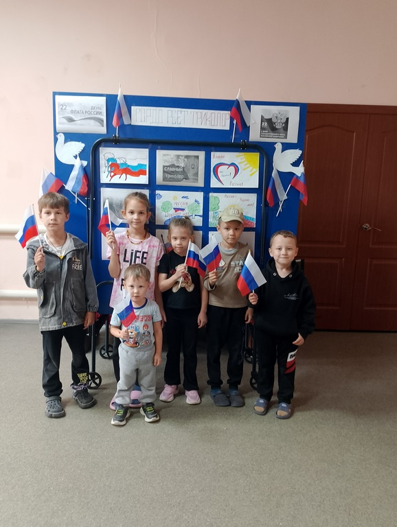 В ходе беседы была рассказана история возникновения и утверждения флага, как одного из символов Государства Российского. Присутствующие вспомнили что обозначают цвета триколора, в каких случаях поднимается флаг Российской Федерации.