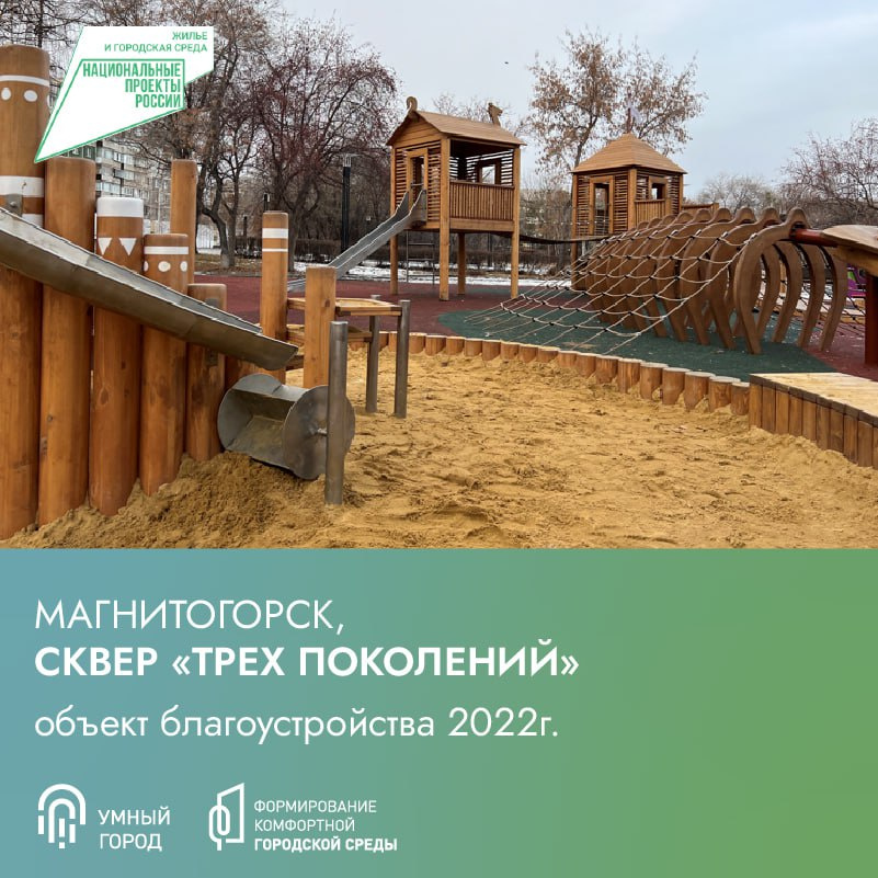 В Магнитогорске благодаря нацпроекту «Жилье и городская среда», федеральному проекту «Формирование комфортной городской среды» в 2022 году благоустроен сквер «Трех Поколений».