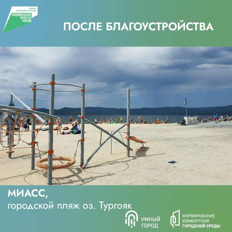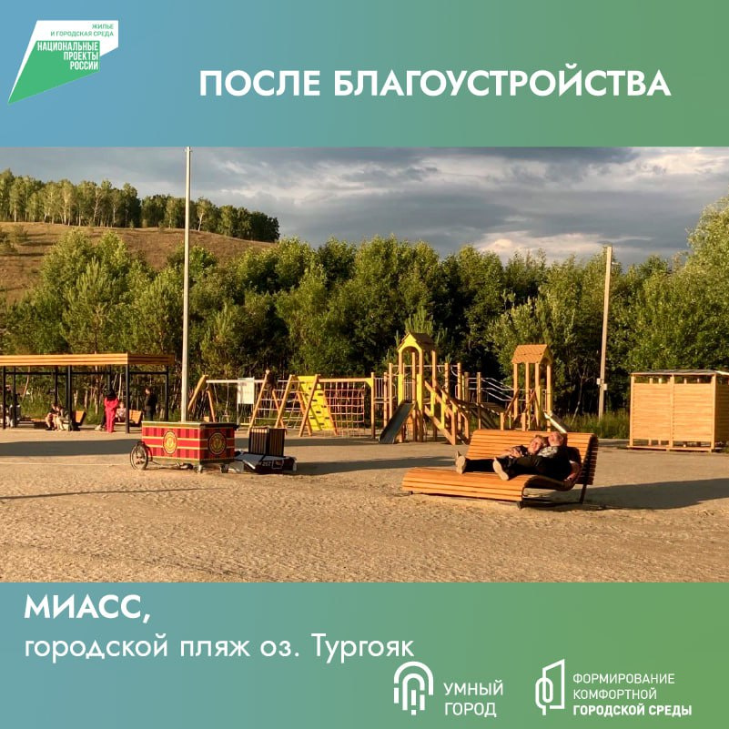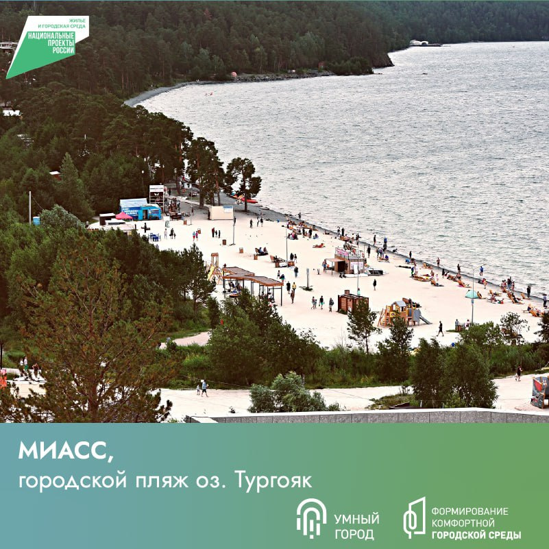 Сегодня расскажем о территории городского пляжа озера Тургояк. Работы поводились с 2021 по 2022 год за счет федерального финансирования, с учетом областного софинансирования. Площадь благоустройства составила 15 000 кв. м.
