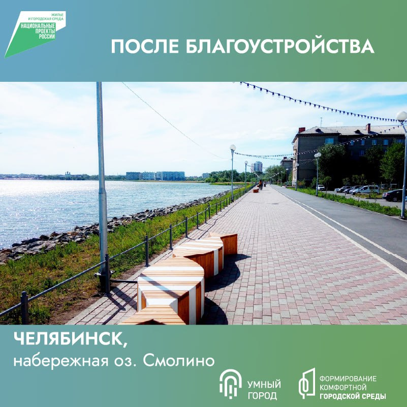 В 2020 году в Челябинске была благоустроена набережная озера Смолино (1 этап): участок набережной от дома № 83 до дома № 97 по ул. Новороссийской.
