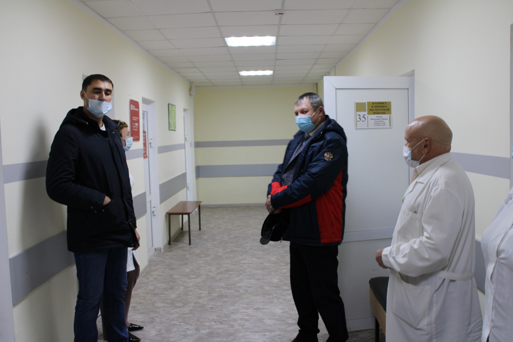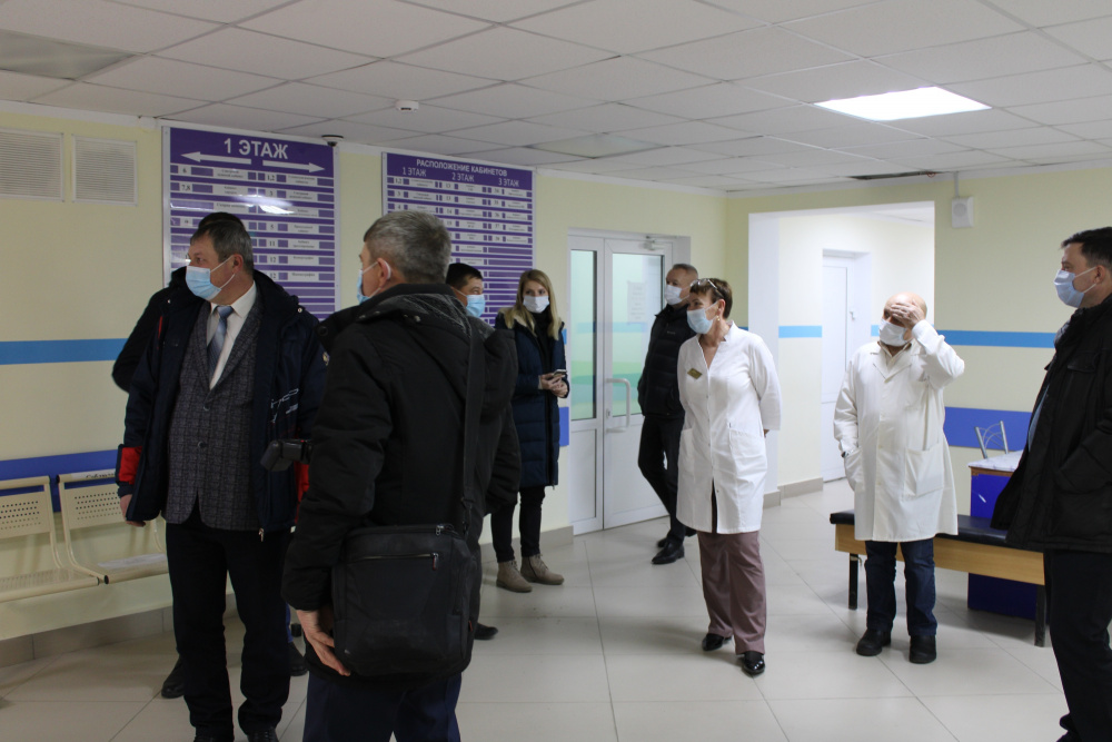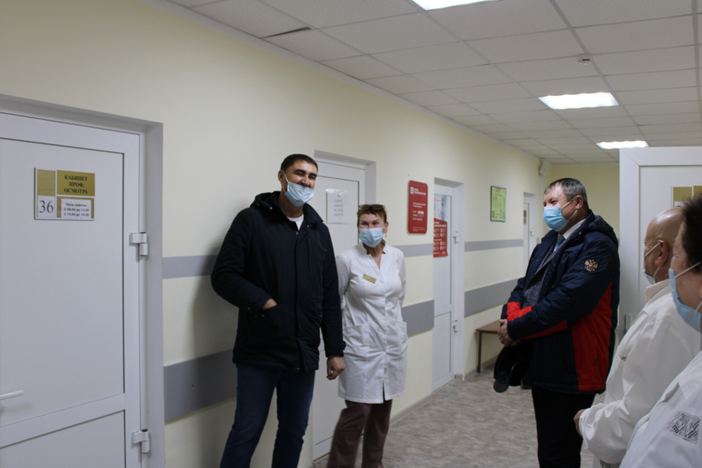 В ходе визита Главы обсуждались вопросы оснащения новым оборудованием, проведения текущих и капитальных ремонтов оставшихся кабинетов поликлиники, надписи «поликлиника» на фасаде здания.
