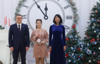Алексей Текслер вместе с супругой Ириной поздравили школьников и вручили новогодние подарки. В завершении приема состоится праздничный концерт с поздравлением Деда мороза и Снегурочки.