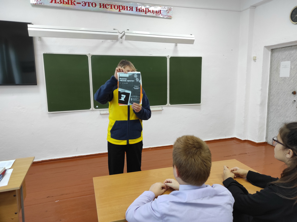 К Международному Дню Белой трости, для учащихся 7 класса МОУ СОШ п. Новопокровка проведён час общении. Работники ДК рассказали ребятам; что такое трость? Для чего она нужна незрячему человеку, об истории белой трости, и о том, что слепые люди по-другому воспринимают окружающий мир. Для того чтобы получить знания слабовидящим также надо уметь читать и писать, но обучиться грамоте им намного сложнее, буквы они воспринимают тактильно - кончиками пальцев, такой метод чтения и письма называется брайлевским. Много информации было рассказано ребятам, они слушали внимательно, задавали вопросы, а мы по возможности отвечали на них. Мероприятие прошло интересно и познавательно.