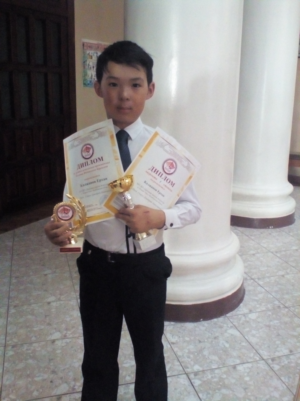 На этом конкурсе для Ерхана главной наградой стал не только полученный опыт, но ещё и победа – звание лауреата I степени, а так же решение жюри – Диплом за лучшее исполнение обязательного произведения из репертуара композитора, которому посвящён этот конкурс – музыканта и педагога Е.Ф.Куревлева.