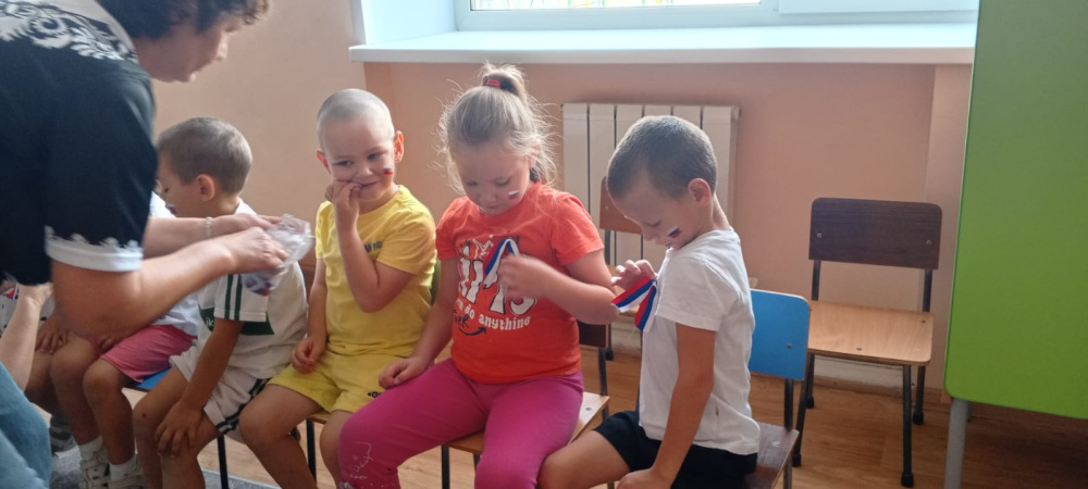 В конце мероприятия ребятам с помощью грима нарисовали триколор на щёчках и на память подарили ленточки триколор. Закончили мероприятие памятной фотосессией.