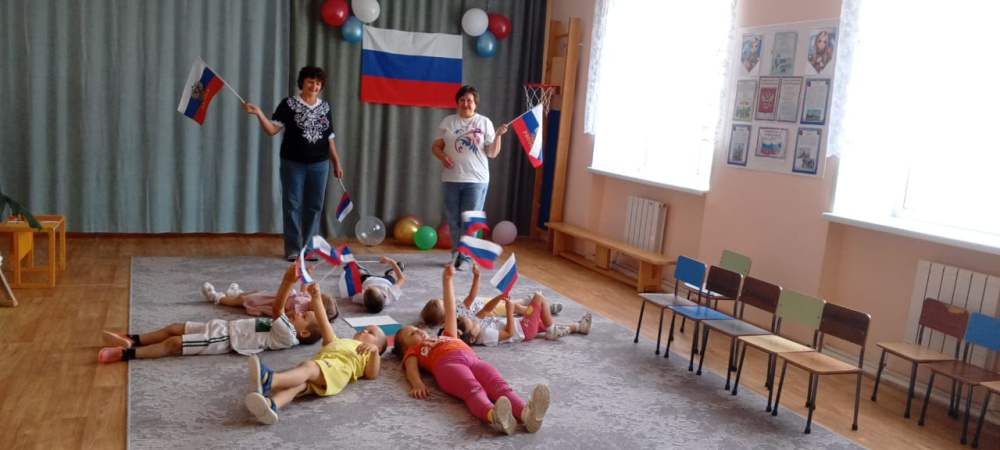 Ребятам рассказали о празднике. Малыши уже знают какие существуют символы государства и называют их. Все вместе послушали Гимн России. Узнали, почему флаг России называют Триколор и для закрепления цветов флага провели развивающие игры.