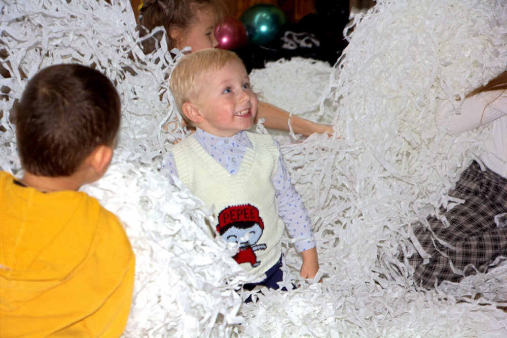 Для них состоялась игровая – развлекательная программа для детей «Дружат дети всей земли». Ребята активно принимали участие в различных подвижных играх, отгадывали загадки, а также участвовали в конкурсах. Большим сюрпризом для детей стало «Бумажное шоу», где ребята от души под весёлую музыку «накупались в сугробах» из белоснежной бумаги.