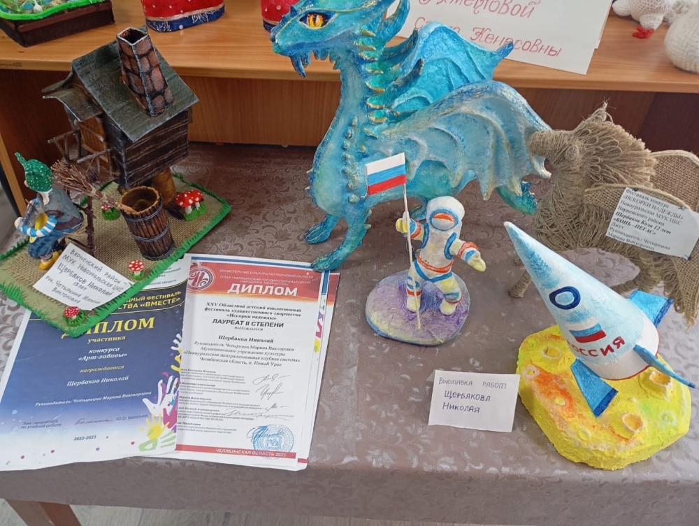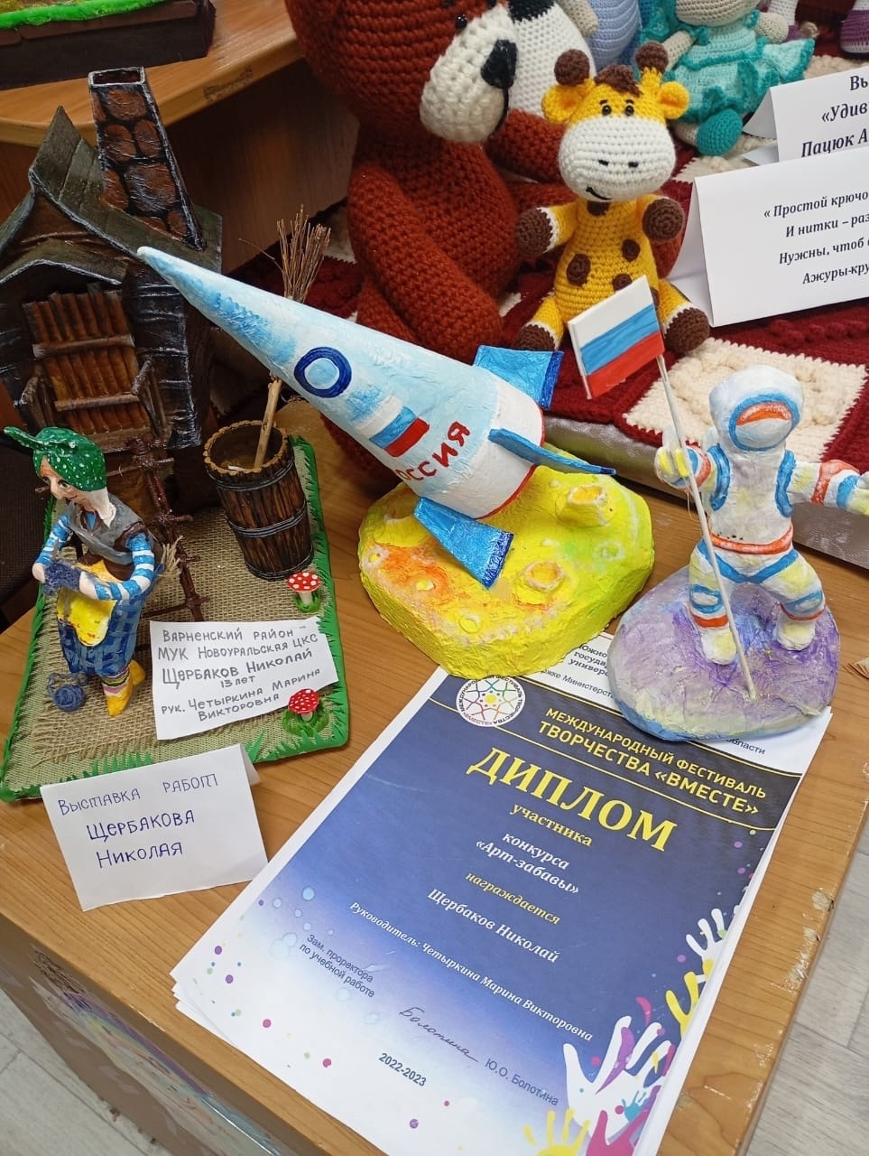 Работы выполнены в разных техниках: джутовая филигрань, папье-маше, плетение из бисера, вязание крючком.