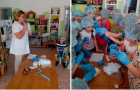Наталья Александровна пришла к детям не с пустыми руками, а с полным пакетом медицинских атрибутов: медицинские шапочки и перчатки, шприцы разных видов, вата, бинт, градусник, стерильные повязки и даже настоящий фонендоскоп.