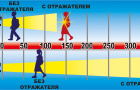 Согласно исследованиям, водители обнаруживают пешехода, имеющего световозвращающие приспособления, с большего расстояния по сравнению с пешеходами без таковых. При движении с ближним светом фар расстояние обнаружения водителем пешехода увеличивается с 25-40 метров до 130-150 метров, а с дальним светом – до 400 метров.