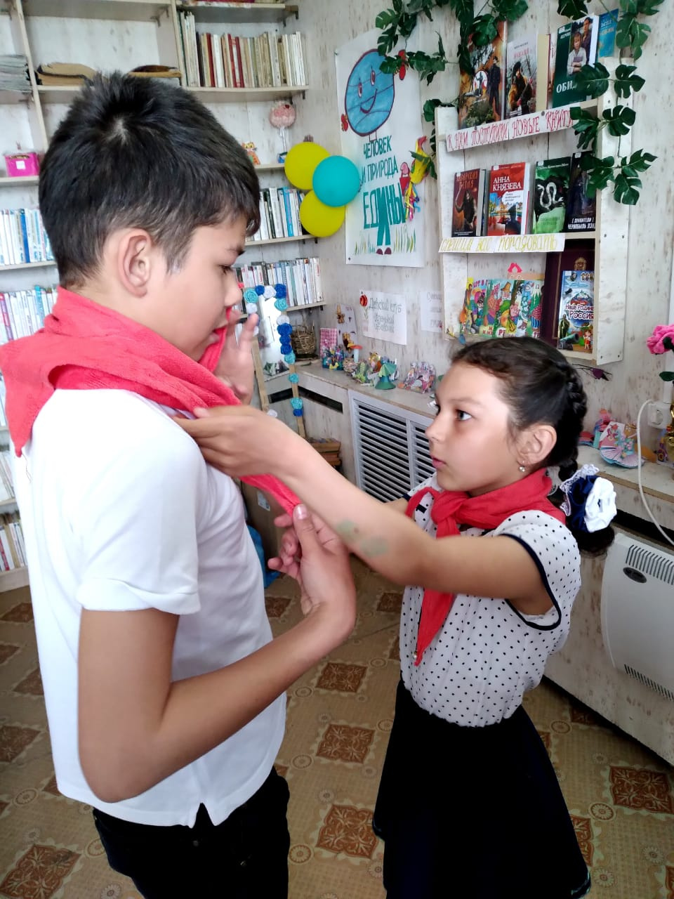 Ребята познакомились с пионерскими атрибутами, примеряли пионерский галстук, с интересом слушали и задавали интересующие их вопросы.