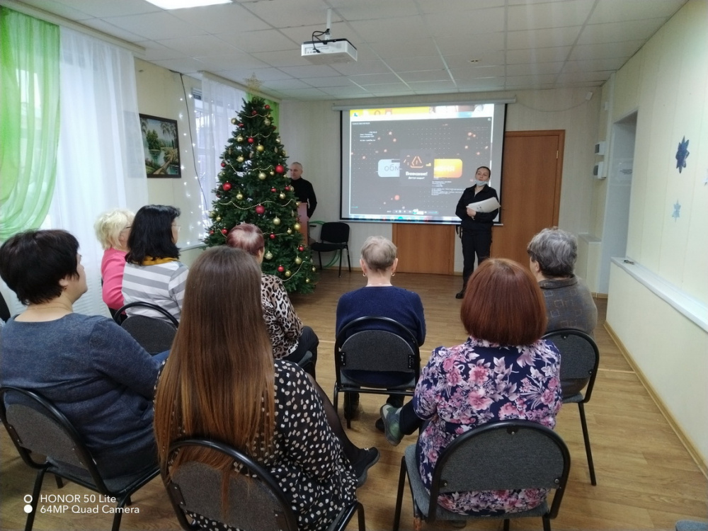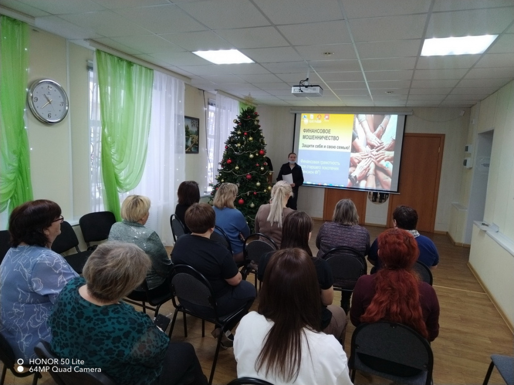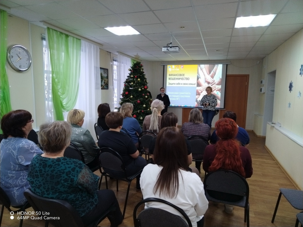 19.12.2024 года в клубе финансово-правовой грамотности Досугового центра для граждан пожилого возраста и сотрудников Комплексного центра социального обслуживания населения прошло мероприятие, на котором представители ОМВД России по Варненскому району следователи следственного отдела Пузикова Анастасия Сергеевна и Нарышкин Юрий Николаевич рассказали участникам встречи, как защитить свои сбережения от мошенников, как общение по телефону сделать безопасным.