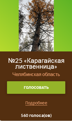 В голосовании, которое стартовало 1 мая и продлится по 1 августа, россиянам представляется уникальная возможность выбрать главное дерево страны: Карагайская лиственница – одна из претендентов на это звание. Голосование проходит на сайте Всероссийской программы «Деревья – памятники живой природы» – www.rosdrevo.ru.