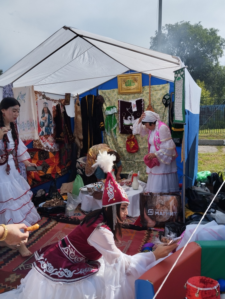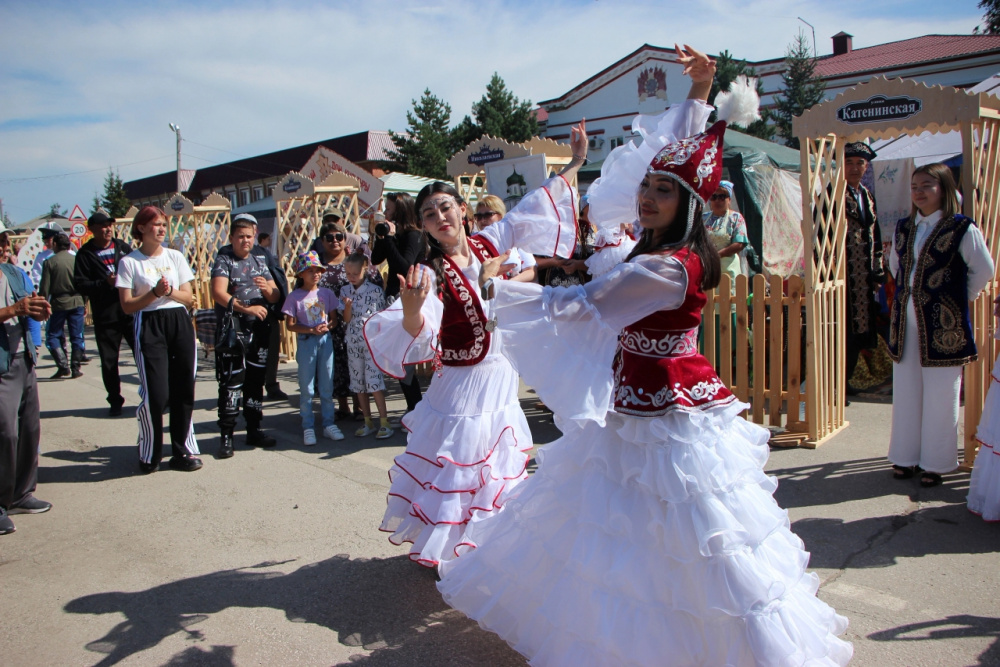 Встречу «будущих родственников», роль которых сыграла комиссия конкурса, катенинцы провели в национальных костюмах в юрте и сопровождали приветствием: национальными танцами, песнями, играми, живым исполнением казахских мотивов на домбре, тостами. Здесь хозяева накрыли богатый дастархан. На белой скатерти стояли традиционные праздничные блюда казахской кухни: бишбармак, приготовленный здесь же в казане на костре, баурсаки, курт и много других.