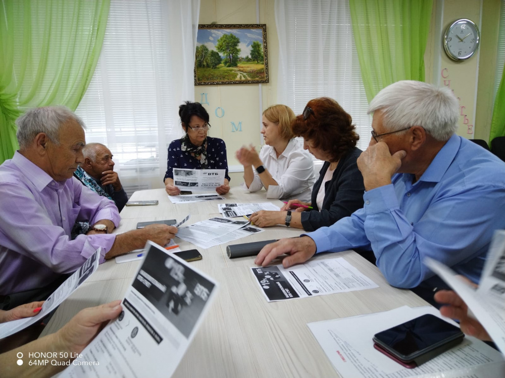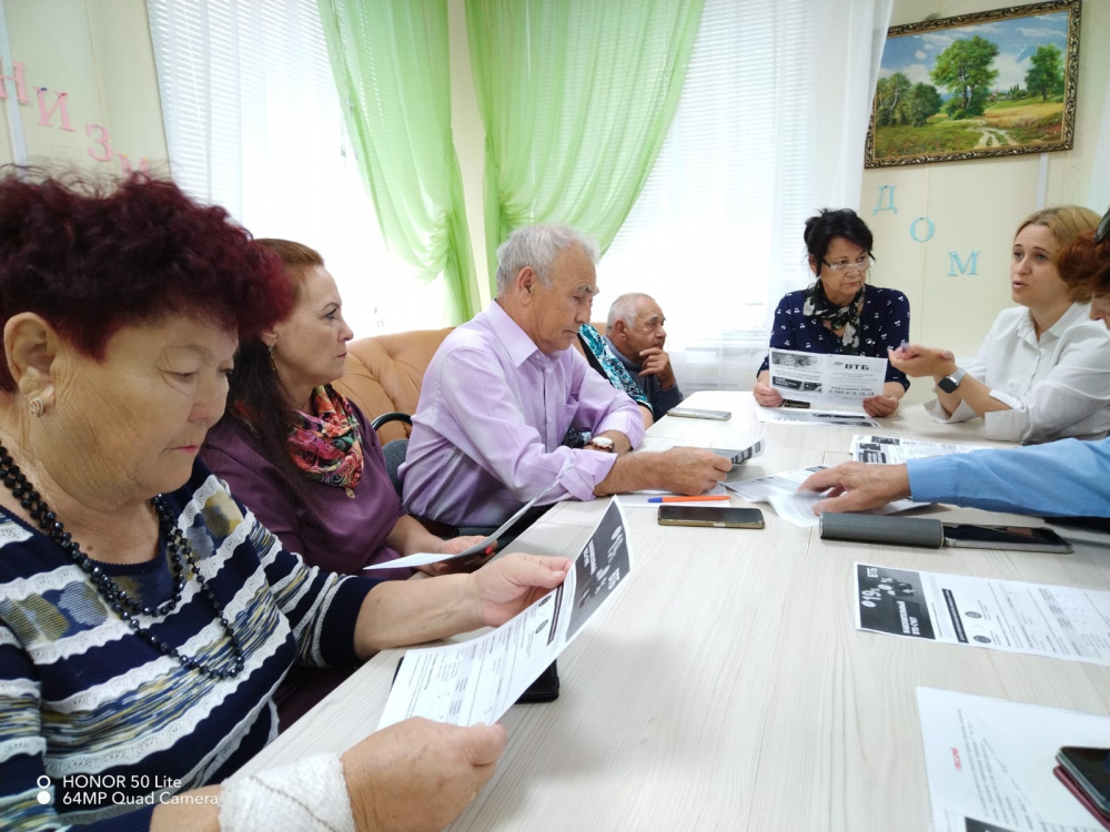 В этот раз пенсионеры встречались с персональным менеджером банка ВТБ Киртьяновой Анной Александровной, которая рассказала гражданам о банковских продуктах для пенсионеров, о том, какие привилегии имеют пенсионеры при переводе пенсии на счет в банк ВТБ, о пенсионной карте и прочих банковских продуктах для граждан пожилого возраста.