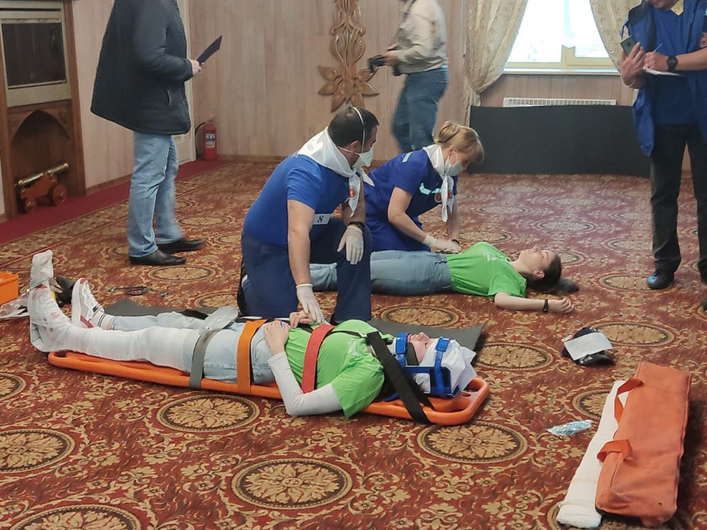 Соревнования состояли из трех этапов. Среди них: тестирование из 20 вопросов, а затем практика. Командам необходимо было за 10 мин провести сердечно-легочную реанимацию с использованием тренажера. Следующим испытанием стало оказание экстренной медицинской помощи и эвакуация пострадавших при ДТП. Пострадавшими выступили студенты медицинского колледжа.