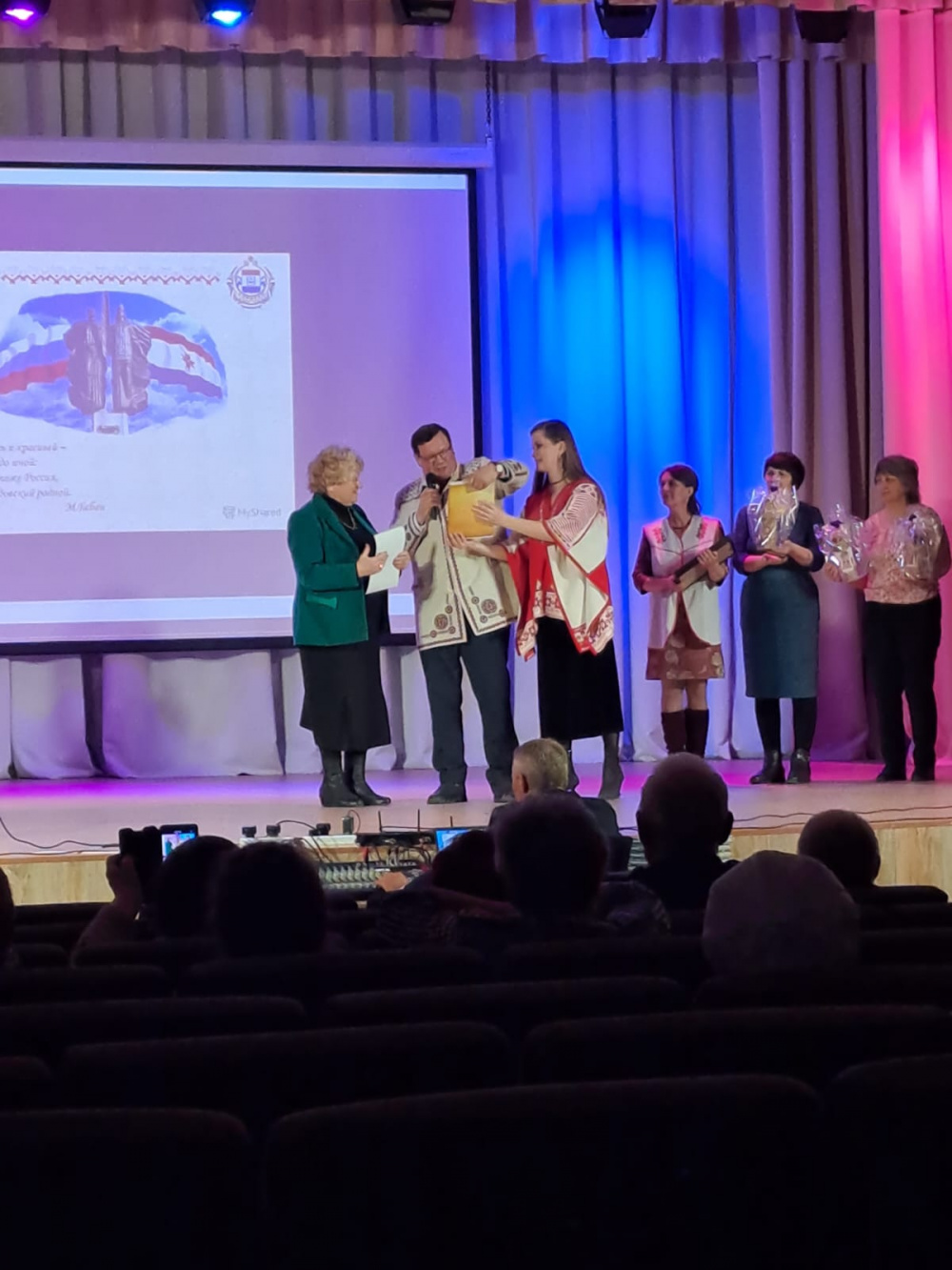 Предоставили слово почётным гостям из Мордовии - Профессору, доктору филологических наук, председателю межрегиональной общественной организации ( мокшанского и эрзянского народа), заместителю НИИ гуманитарных наук при правительстве Республики Мордовия - Мишанину Юрию Александровичу.