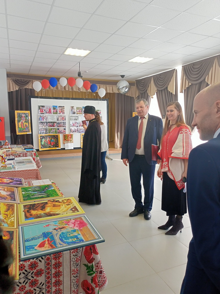 Познакомили с экспозициями наших сельских мастеров, с картинами Бугаенко Людмилы Вениаминовны и Шульдайс Якова Яковлевича, с работами декоративно-прикладного творчества от Бабиной Людмилы Васильевны и Данчиновой Светланы.