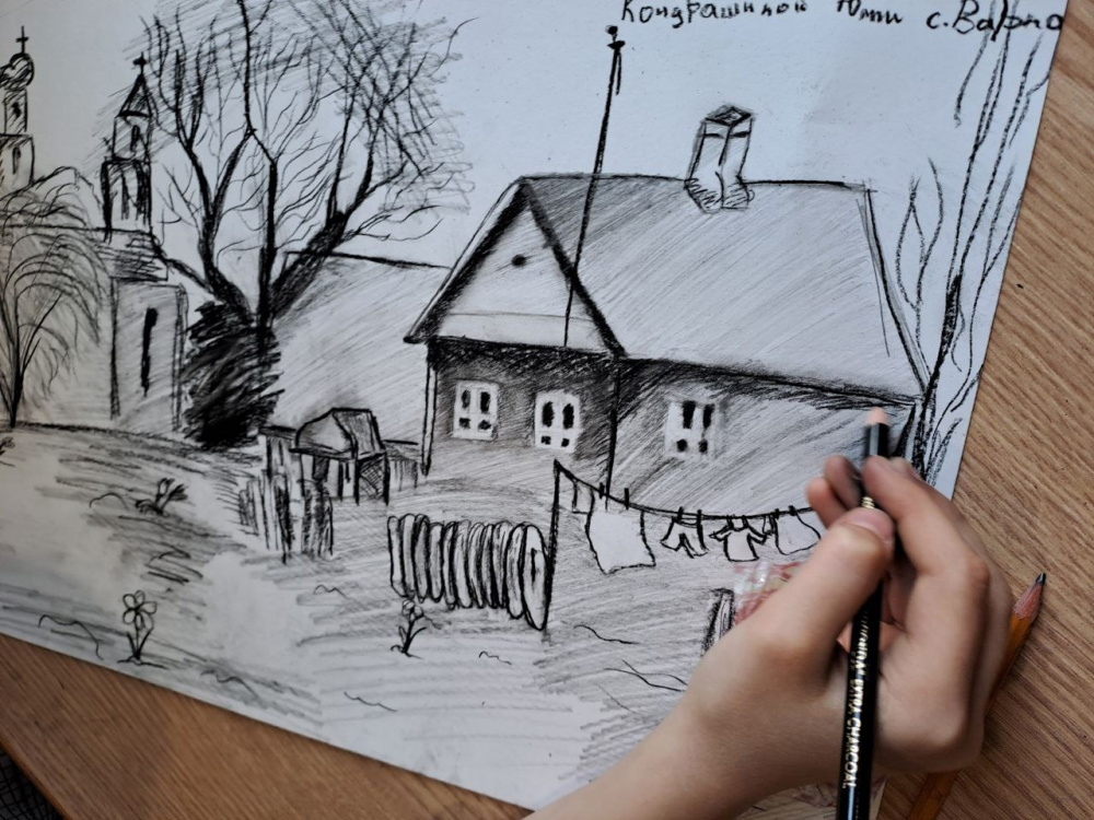 Тема этого года - графика. Все работы выполнялись графическими материалами: карандашами, пастелью, сангиной, углём. В течение двух часов ребята выполняли конкурсные задания. Старшие группы рисовали натюрморты с натуры. Младшие - сельский пейзаж.