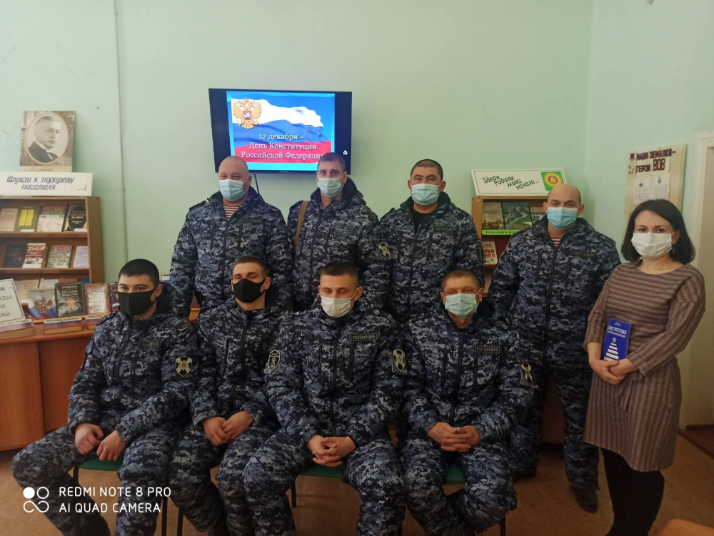 На мероприятие были приглашены сотрудники Росгвардии. Участники мероприятия, познакомились с историей принятия Конституции, с содержанием основного закона нашей страны, обсудили права и обязанности ее граждан, вспомнили, какие есть государственные символы России. Мероприятие сопровождалось показом видеопрезентации "12 декабря - День Конституции Российской Федерации". В ходе мероприятия был проведен обзор книжной выставки «Конституция - гарант свободы человека и гражданина". В завершении мероприятия сотрудникам Росгвардии было предложено ответить на вопросы кроссворда на знание Конституции. Участники мероприятия с легкостью справились с заданием.