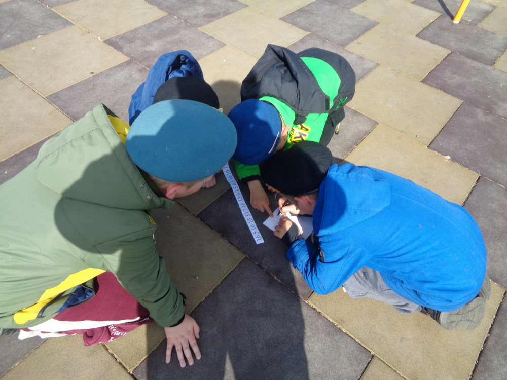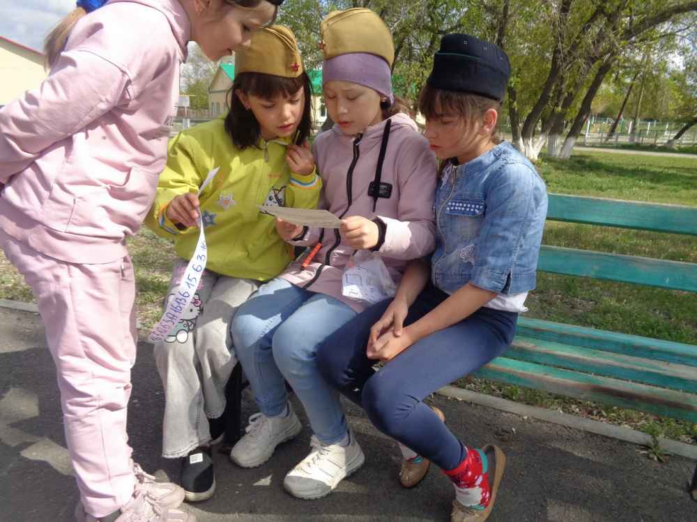 Первое испытание в квесте – «Марш-бросок». Надо было очень быстро отвечать на вопросы. Далее были испытания «Попади в цель», «Шифровальщик», "Сапёры". Команда девочек отвечала быстрее и слаженней и получила все части карты первой. По карте они нашли спрятанное знамя и победили в игре. Молодцы девчата! А мальчишки расстроились. Но ничего, у них ещё есть время отыграться.