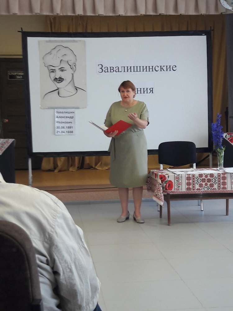 Руководитель школьного краеведческого музея Бугаенко Людмила Вениаминовна познакомила гостей с экспозицией школьного музея, посвящённой семье А.И.Завалишина и его творчеству, а также рассказала о появлении традиции проводить каждый год «Завалишинские чтения» с целью сохранения памяти о знаменитом земляке и популяризации литературного творчества среди односельчан.