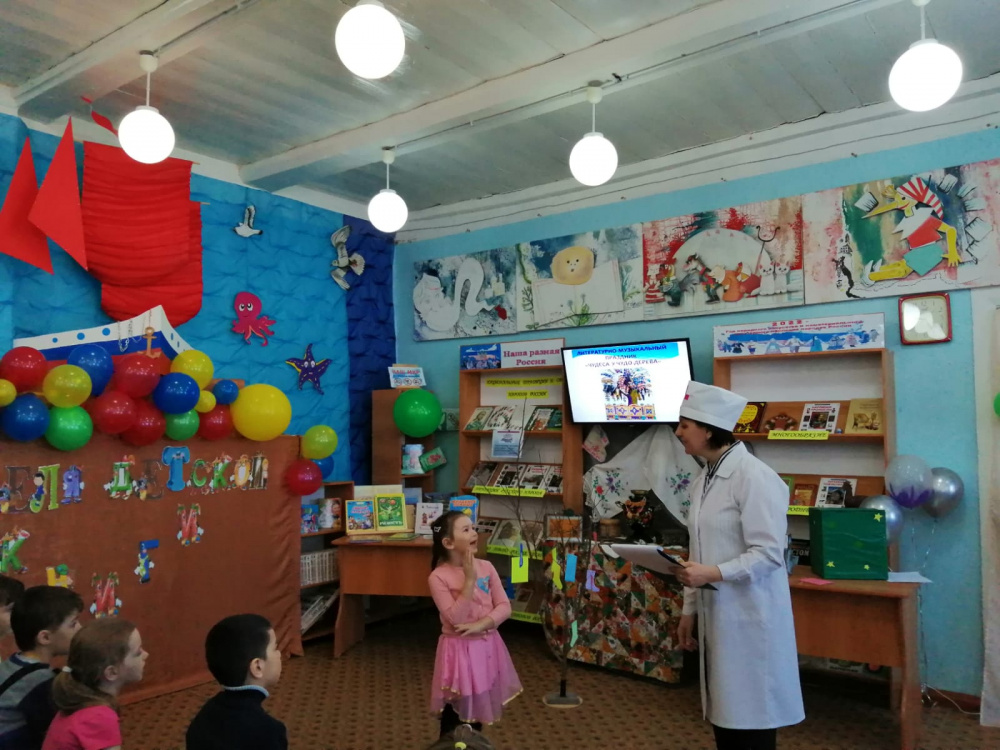 В третий день на Неделю детской книги в гости в детскую библиотеку пришли ребята из МКДОУ ЦРР д/с «Аленушка». Гостей встречал герой замечательной доброй сказки К. Чуковского доктор Айболит. И вместе с ним дети отправились в увлекательное путешествие по сказкам К. Чуковского. Отгадывали название сказок по картинкам, отвечали на вопросы «Чудо-дерева», играли в игры «Путаница», «Дин-дилень», даже побывали на празднике у Мухи-Цокотухе, где все вместе танцевали. В конце мероприятия дети смотрели поучительный мультфильм по сказке К. Чуковского «Мойдодыр».