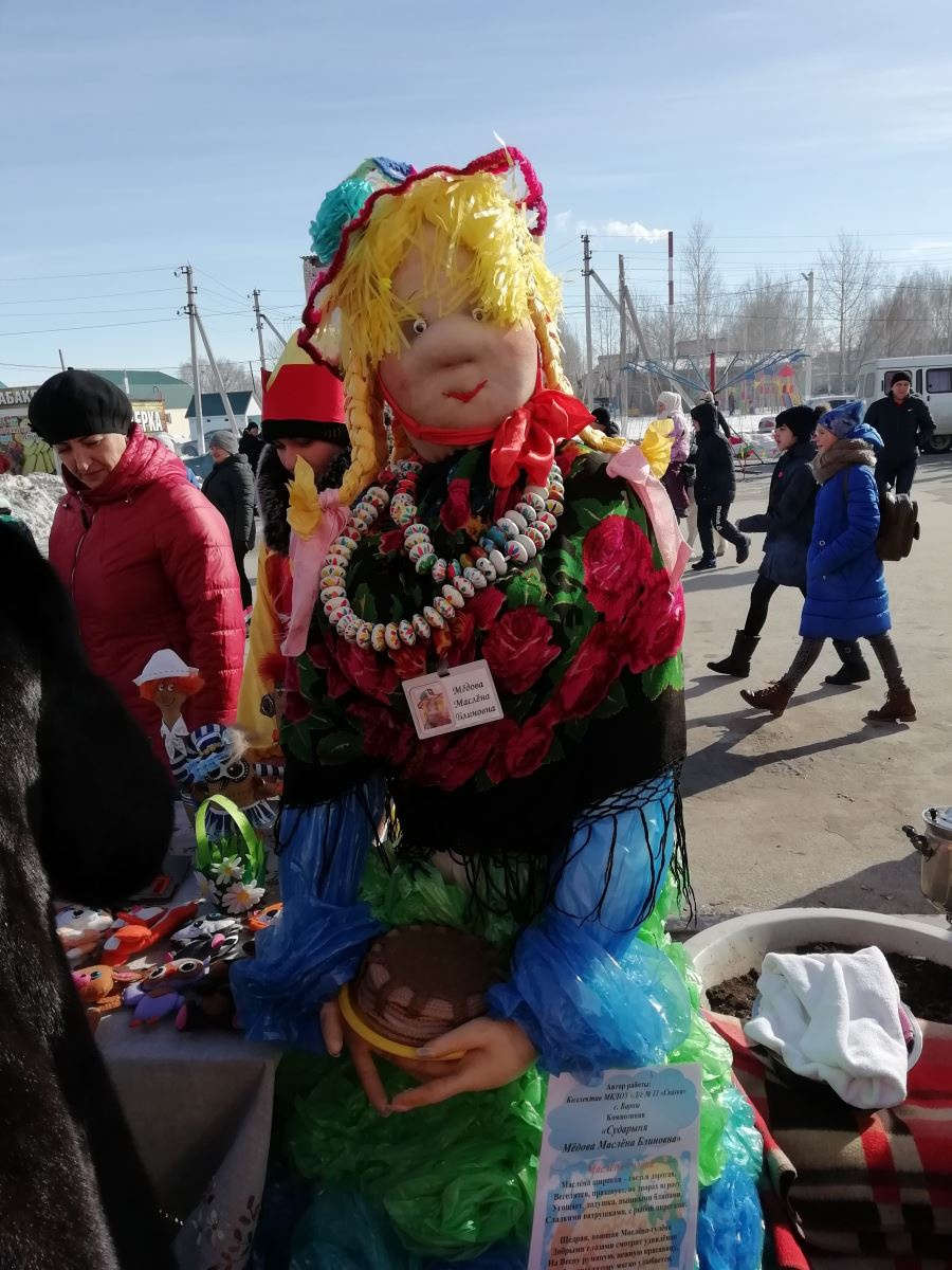 Представители МКДОУ «Детский сад № 11 «Сказка» представили на ярмарке огромное разнообразие поделок: от декоративных красивейших резиночек до хозяйки праздника распрекрасной Мёдовой Маслены Блиновны. Обучающиеся, родители и их педагоги приготовили вкуснейшие угощения, которым не было пересчёту: блины простые и с разнообразными начинками, сдоба, печенье, вафли, чай, капкейки, пироги и многое другое. Всё это продавали за символичную цену с песнями, частушками и плясками. У каждой группы ребят был свой зазывала – скоморох, который неустанно с приговорками зазывал покупателей полакомиться их трудами.