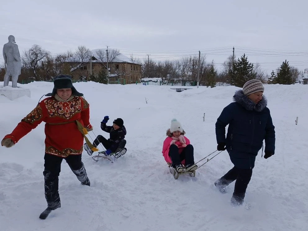 Гости праздника приняли участие в различных забавах: гонках на санках и перетягивании каната, после чего все дружно пили чай и угощались блинами.