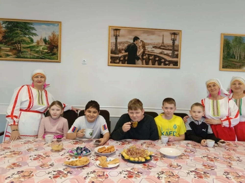 Гости приняли участие в весёлых играх под народные песни. Завершилось мероприятие чаепитием за вкусно накрытым столом. На столе были не только сладости и пироги, но и блюда мордовской кухни — блины-пачат и салат «Якстере вий».
