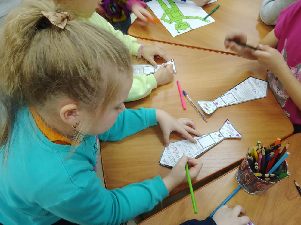 Поэтому в этот день для учеников МОУ СОШ №1 1 «А» класса был проведен мастер – класс по изготовлению необычных открыток в форме галстука. В начале встречи ребята узнали об истории молодого праздника, также познакомились с художественной литературой, где главными героями являются папы.