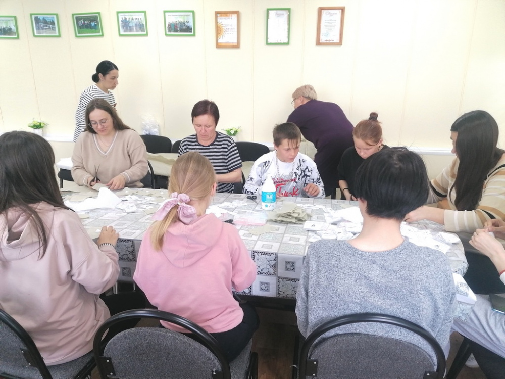 24.04.2023г. в актовом зале МУ «КЦСОН» был организован мастер-класс от центра «Дорога добра», где дети и родители из семей, состоящих на социальном сопровождении в МУ «КЦСОН Варненского муниципального района», а также специалисты отделения помощи семье и детям изготовили сухой душ для ребят, находящихся в зоне СВО.