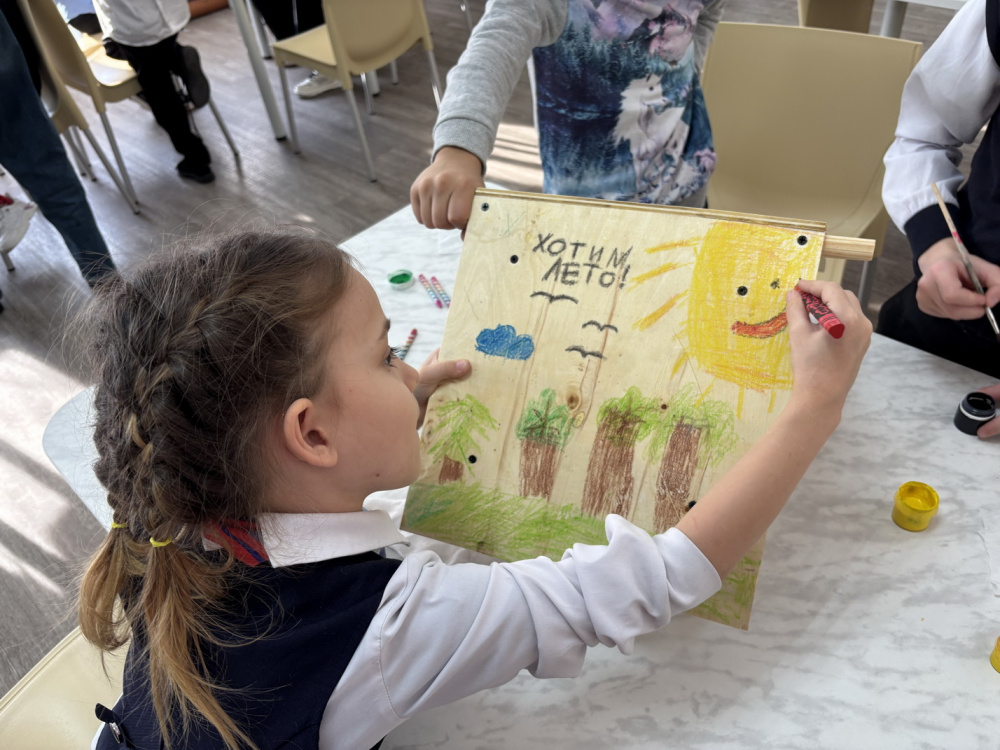 Ребята вспомнили, какие птицы обитают в наших краях, чем они питаются. Взрослые обратили внимание школьников, что снежный покров препятствует доступу к естественным источникам питания, поэтому птиц зимой нужно подкармливать. Дети с большим интересом и воодушевлением приступили к росписи «столовых для пернатых».