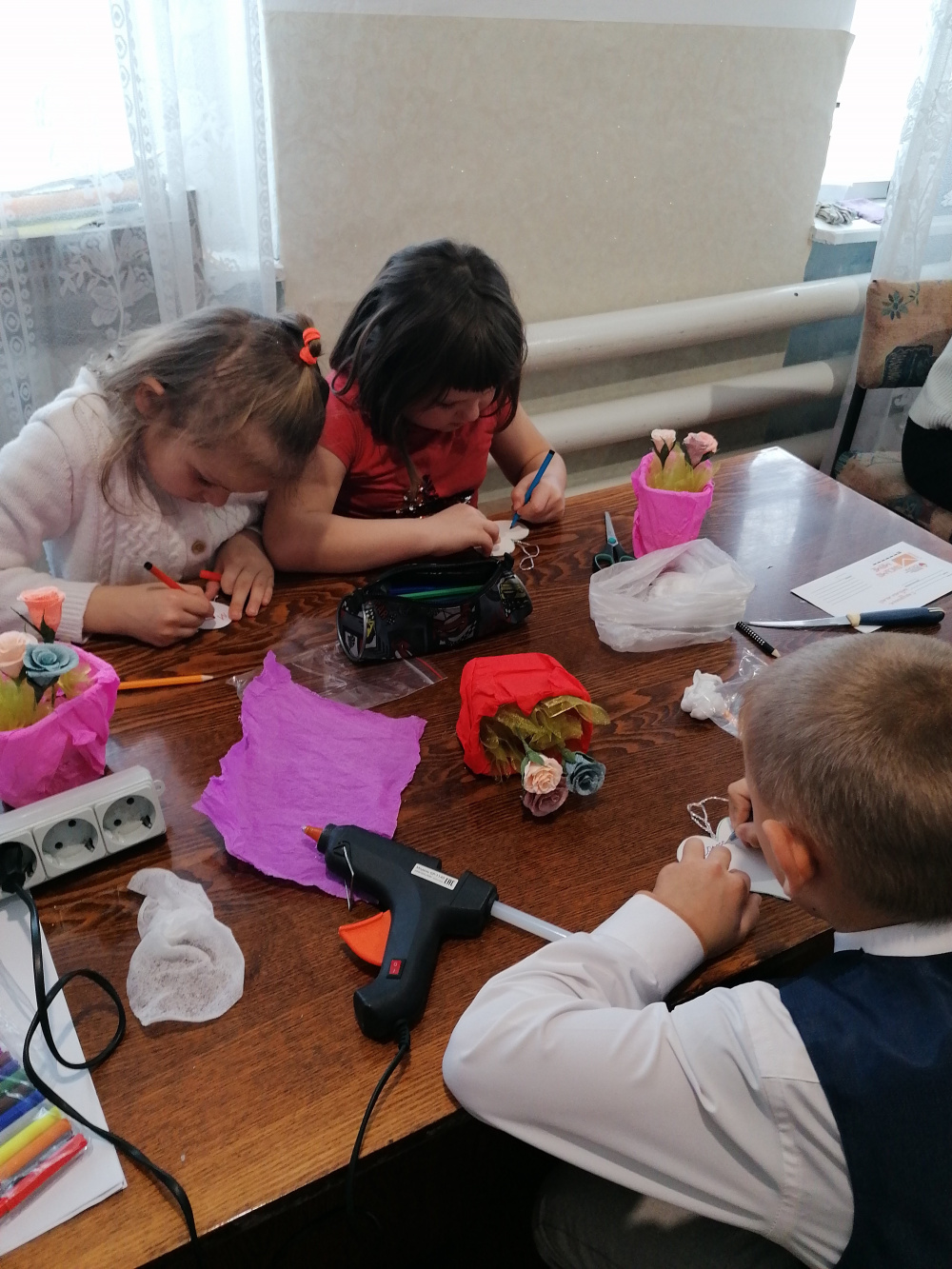 24.11.2022г. в преддверии празднования Дня Матери специалисты отделения помощи семье и детям МУ «КЦСОН Варненского муниципального района» организовали на территории Аятского сельского поселения с детьми, состоящими на соц. сопровождении и постсопровождении мастер-класс Киселевой Ольги Леонидовны по изготовлению сладкого букета в подарок маме.