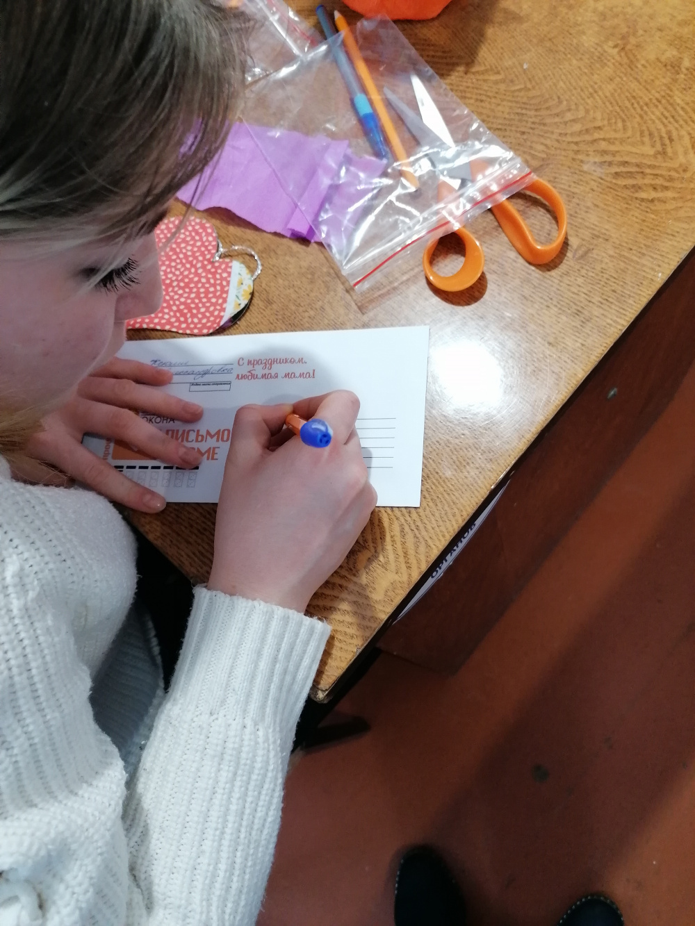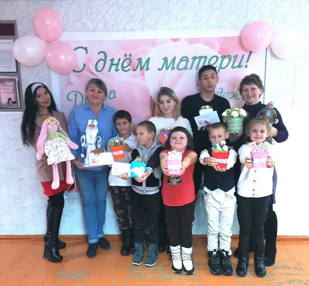 Далее социальный педагог познакомила ребят с талантливой женщиной, которая является ярким примером мамы, Мамы с большой буквы, которая, несмотря на наличие в семье шестерых детей, на протяжении нескольких лет увлекается шитьем кукол. Куклы, изготовленные руками Ольги Леонидовны, получили прописку во многих городах России. Но, как гласит народная мудрость, талантливый человек талантлив во многом. Ольга Леонидовна продемонстрировала ребятам и другое свое увлечение - изготовление сладких букетов. Она предложила детям изготовить такой букетик своими руками, чтобы этот чудесный подарок они смогли подарить родному человеку в праздник. Из подручного материала, гофрированной бумаги, клея, ножниц, бисера, гипюра, фломастеров ребята с удовольствием своими руками создали прекрасные букеты. По окончании мероприятия соц. педагог всем ребятам предложила подписать поздравительные открытки, предоставленные в рамках проекта «Письмо маме», в которых ребята смогли выразить свои самые теплые чувства к маме, а кто-то из ребят даже захотел извиниться перед самым дорогим человеком за какие-то свои проступки. После мероприятия все с удовольствием сфотографировались с е готовыми поделками у праздничной фотозоны, чтобы эти фотографии подарить мамам. Специалисты ОПСиД поблагодарили Ольгу Леонидовну за проведенный мастер-класс, а всех присутствующих женщин поздравили с предстоящим праздником, пожелали крепкого здоровья, мира, счастья и добра в семьях.